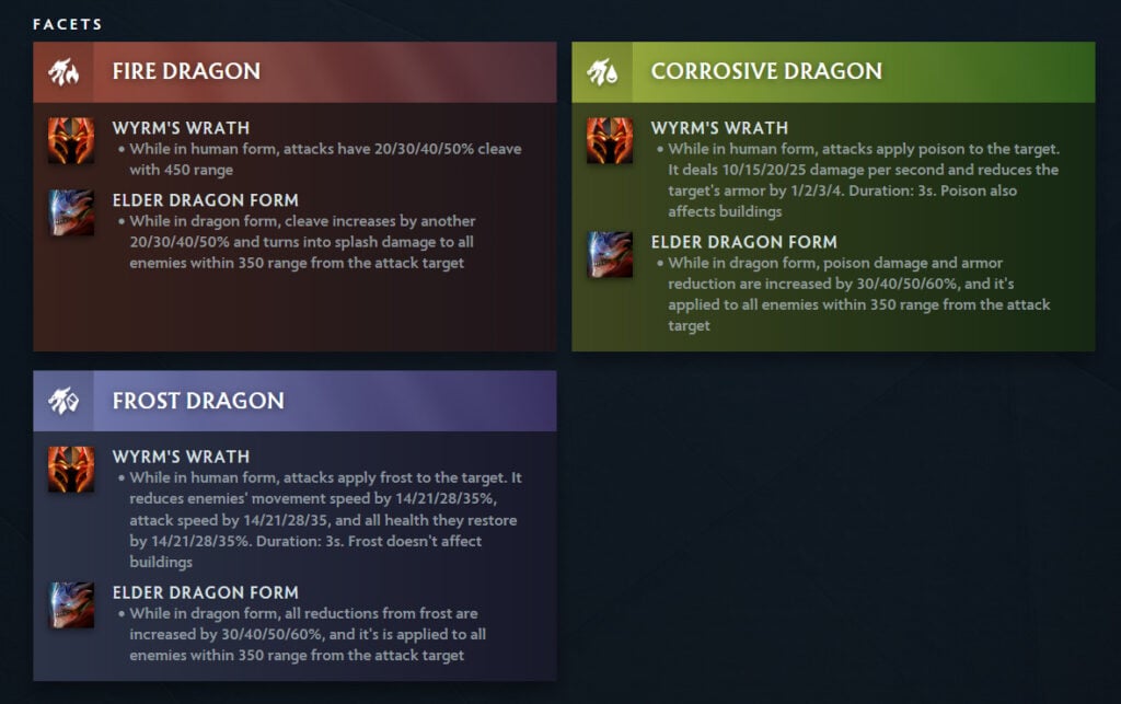 For your information, Hero Facet is a completely new mechanic in Dota 2 that came alongside Patch 7.36. Take a look at Dragon Knight’s Facets below!
