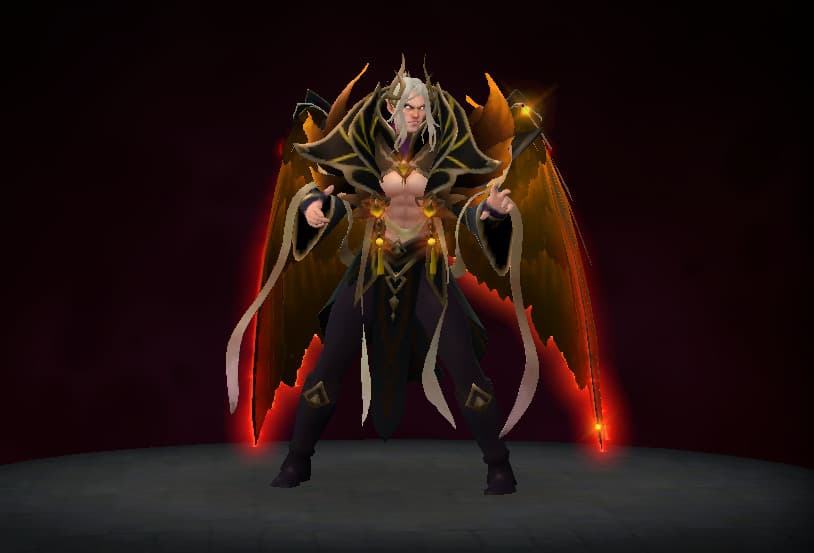The Crownfall event released an ambient set for Invoker. This set styles Invoker in a long, messy ponytail and his abdomen is now visible. But the most striking part of the set is his new pair of monstrous wings. The feathery wings are colored in a glowy purple by default but the set also comes in three other styles that have the wings in different colors! Take a look below!