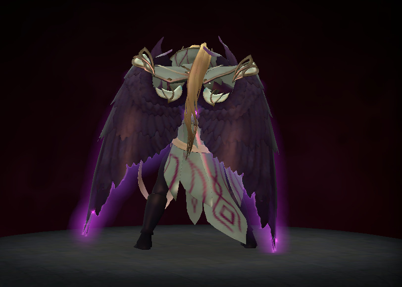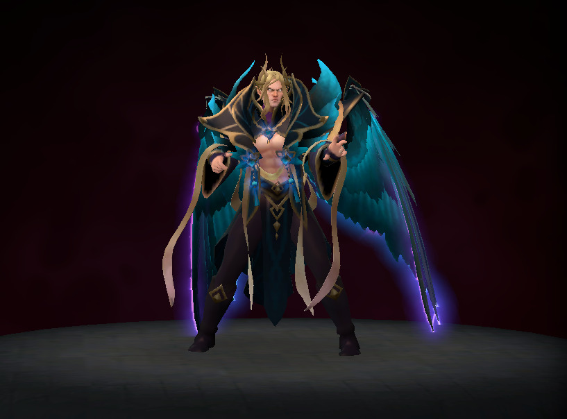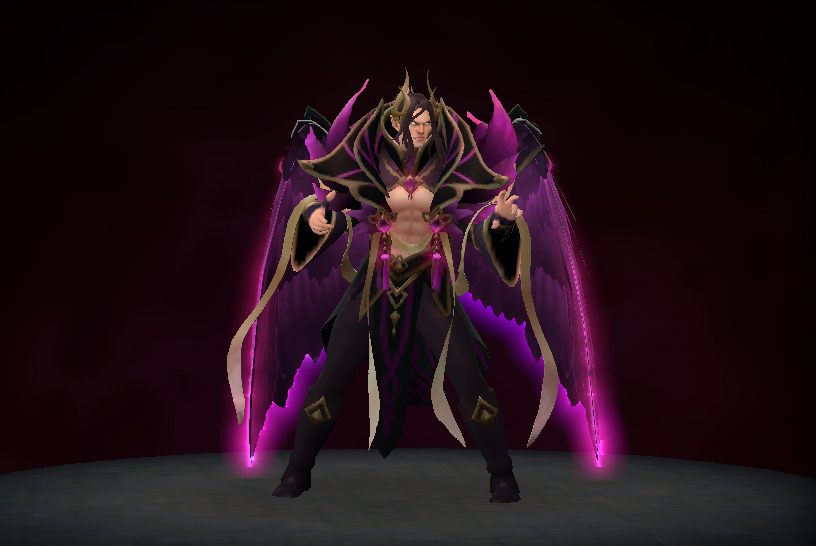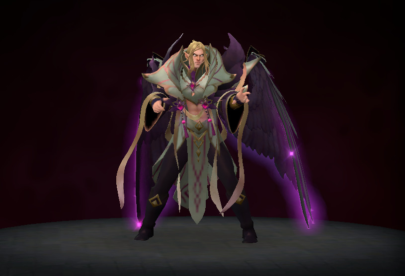 The Crownfall event released an ambient set for Invoker. This set styles Invoker in a long, messy ponytail and his abdomen is now visible. But the most striking part of the set is his new pair of monstrous wings. The feathery wings are colored in a glowy purple by default but the set also comes in three other styles that have the wings in different colors! Take a look below!