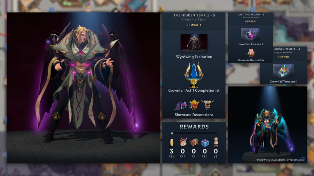 The Overworld map includes two side quests blocked for players looking to enjoy the Dota 2 Crownfall event for free. These quests are not relevant for the main storyline, but you will miss two styles for the Invoker’s mythical set. The Midgate Pathfinder Pack to unlock the two side quests includes: