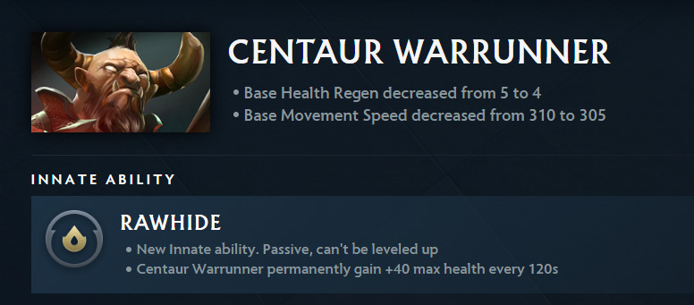 As an example, Centaur Warrunner’s Innate is a passive unique to the hero. It allows Centaur to permanently gain +40 max health every 120 seconds!