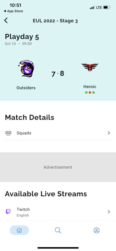 With every team standing all in one place, you are now able to just open up the app and check how your team did in their latest match. Basically, this is the ESPN app but for gamers.