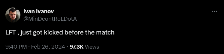 The Bulgarian offlaner took to Twitter/X to drop the bombshell. MinD_ContRoL posted: “(Looking for Team) just got kicked before the match.” The post received a lot of confused and baffled replies from the Dota 2 community including popular personalities and players.