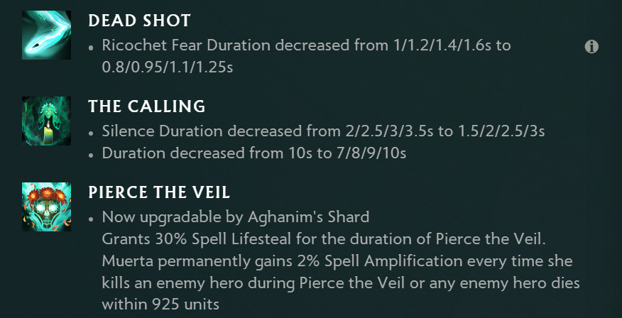 Aside from the additions of Aghanim’s Scepter and Shard upgrade, there were also tweaks to Muerta’s abilities.