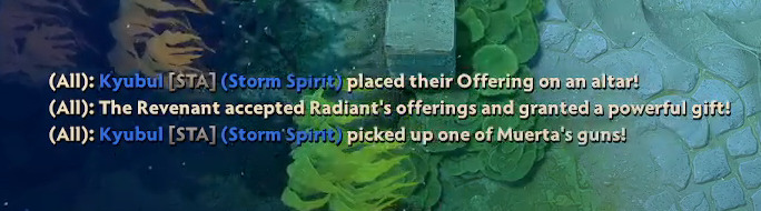 As you can see in the video above, the player searches for the offering and brought it to Muerta’s shrine or statue. The Muerta shrine is located on the left side of the map, right in between the Radiant and Dire (as far as we can see in the video). Submit your offering to the statue and the prompt will state, “The Revenant accepted Radiant’s offerings and granted a powerful gift!”.
