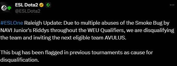 When it came to the ESL One Raleigh 2025 qualifiers, NAVI Junior was first called out for using the bug by AVULUS after their victory in the lower bracket final. At that point in time, following an investigation, NAVI Junior was swiftly disqualified – which caused a major uproar.