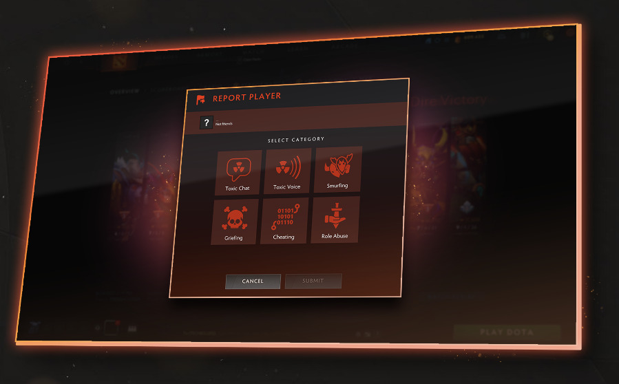 The Dota reporting system introduces new, more versatile categories to improve your matchmaking experience. Before, you could only report players for communication, matchmaking, or smurfing/account-buying abuse. Now, that all has changed to: