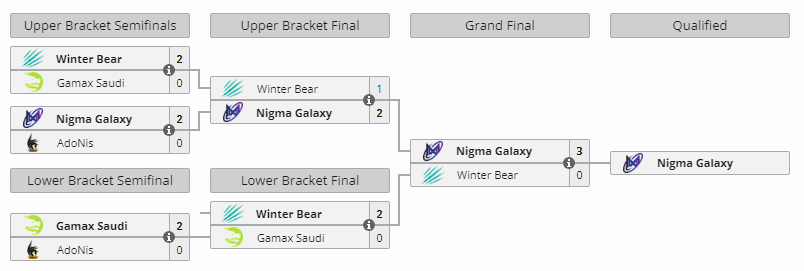 The MENA Qualifier witnessed Nigma Galaxy's improved form. They delivered an undefeated Upper Bracket run and clean swept the grand finals 3-0, defeating Winter Bears. This is also a feat on its own as Nigma Galaxy actually has a bad head-to-head score with Winter Bears, losing two previous qualifiers to this Iranian underdog.