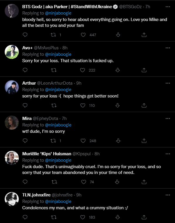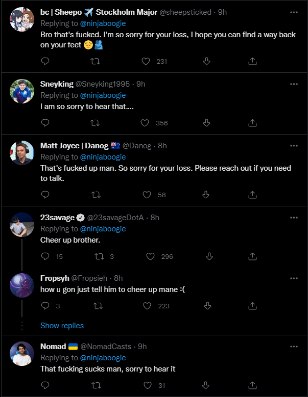 Ninjaboogie received a lot of support from Dota 2 pros and talents, empathizing with him and the obnoxious situation.