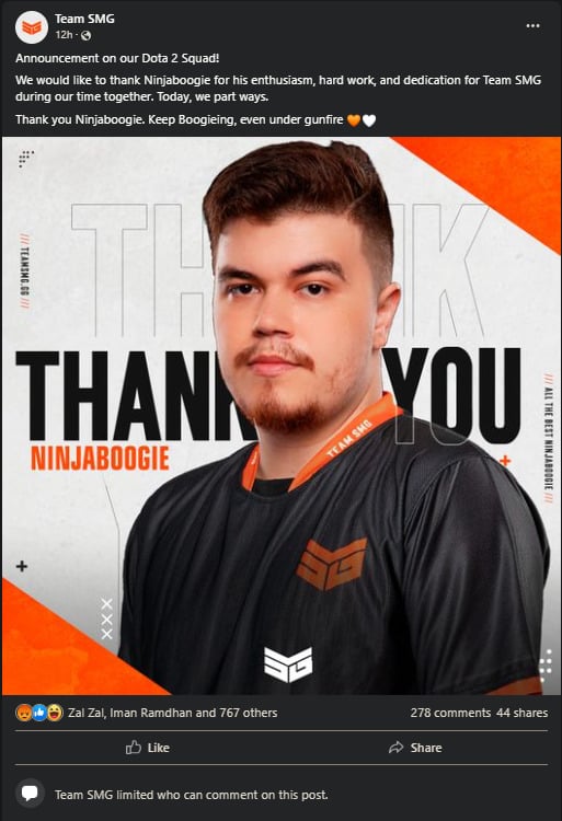 Following ninjaboogie’s statements, Team SMG’s socials are bombarded by a wave of comments criticizing and calling out the organization. On Facebook particularly, the roster announcement post received a stream of spiteful comments. The post currently has its comment section limited.
