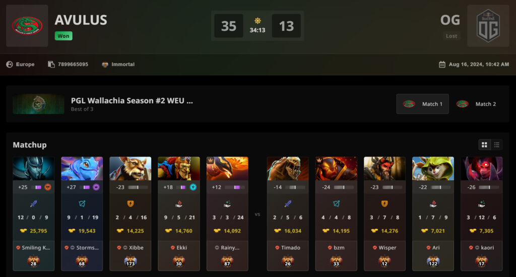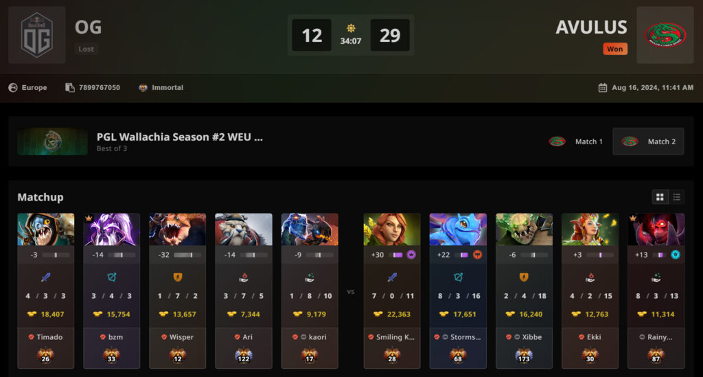 The odds were then in favor for OG during their PGL Wallachia S2 Closed Qualifiers run. Their next rival, AVULUS, arrived after being defeated by Team Secret: a squad that recently formed with Tobi, who came from a four months hiatus, and Kyzko, a very skilled player with no Tier 1 experience yet.