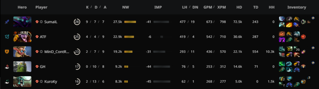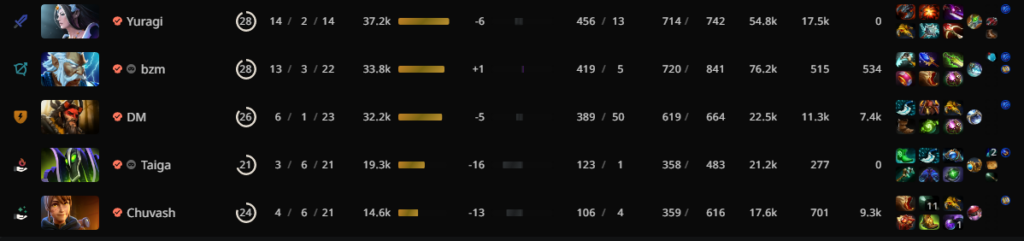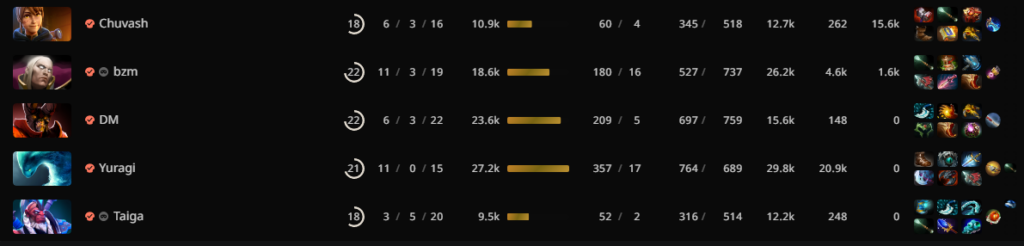 The second game saw a stronger dominance on the side of OG. They once again picked a pos 5 Marci for Chu and he played well to enable all his cores. Yuragi’s Morphling survived the match without a single death, scoring an impressive KDA of 11/0/15.