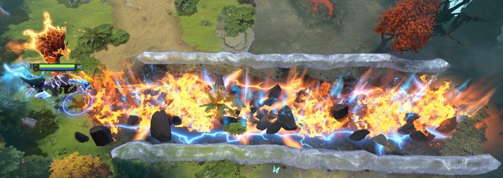 In Patch 7.34, the burning fire of Macropyre can be upgraded by Agh’s Scepter to include two ice walls on the side that slows movement.