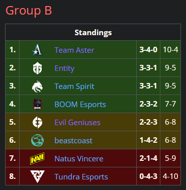 Here is the final standings of the PGL Arlington Major Group Stage. The top 4 of each group head to the Upper Bracket. Meanwhile, the 5th – 6th rank go to the Lower Bracket. The bottom 3 of Group A and Group B: Talon Esports, Thunder Awaken, Soniqs, NAVI and Tundra Esports are eliminated.