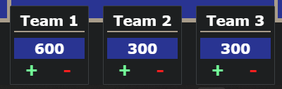 To update the scores, the host needs to manually add or subtract them for each contestant. The + and – button by default adds or subtracts 100 points.