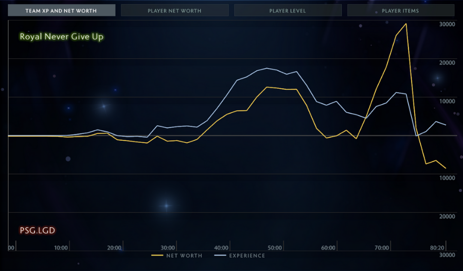 And if you’re wondering how massive of a comeback PSG.LGD managed to pull, here’s the XP and net worth graph for Game 2.