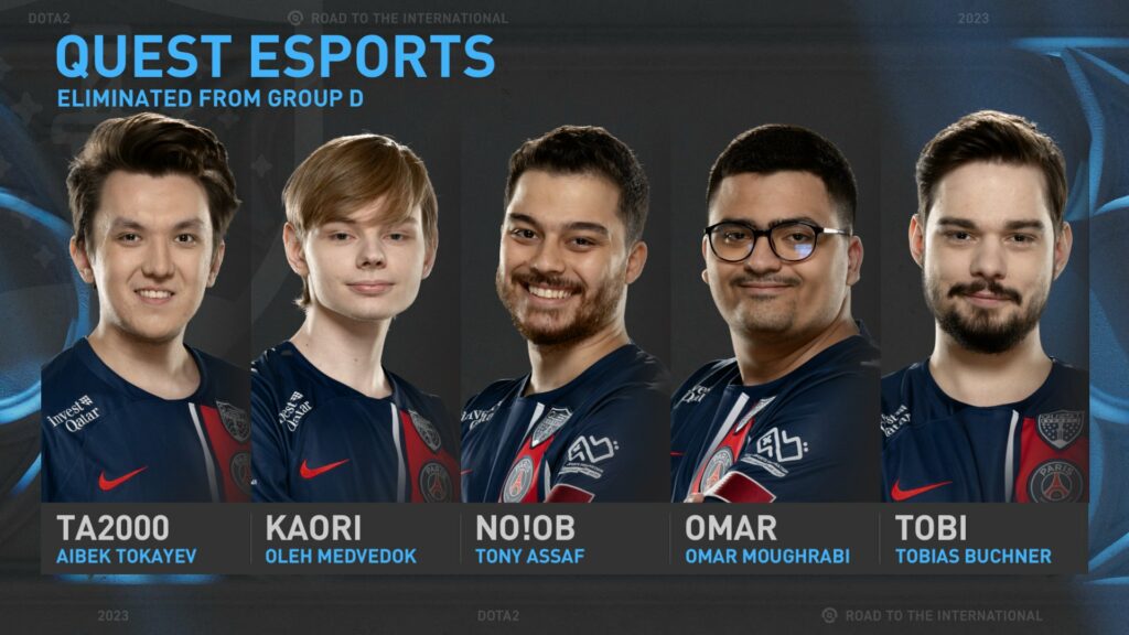 The International 2023, TI12, has begun shedding off teams in each group as we approach Phase Two of the Group Stage. In a shocking turnaround, PSG Quest is out of TI12 after finishing bottom in Group D. The TI debutants had plenty of expectations on their shoulders, touted to become the strongest dark horse of the tournament. However, the Western Europe team departs the championship early following a poor performance.