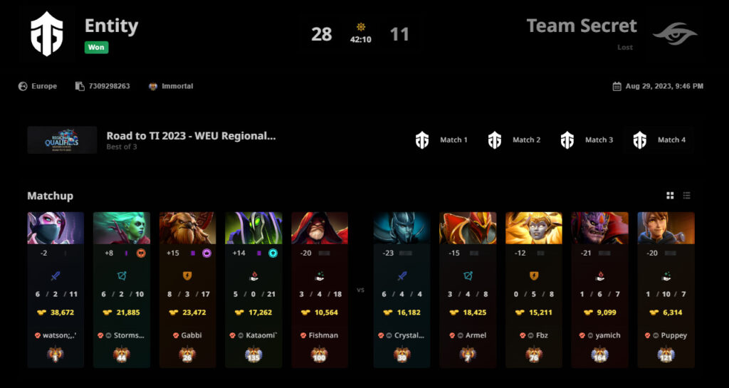 The series between Entity and Team Secret was pretty straightforward. There weren’t massive comebacks or moments. Instead, Entity outplayed and outsmarted Team Secret, walking away with a smooth 2-0 win.