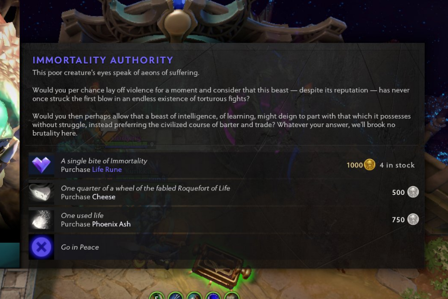 In Aghanim’s Labyrinth you will also stumble upon many other ‘shops’ that sell upgrades, Life Runes (to replenish life charges), Cheese, Bottle refills, and more.