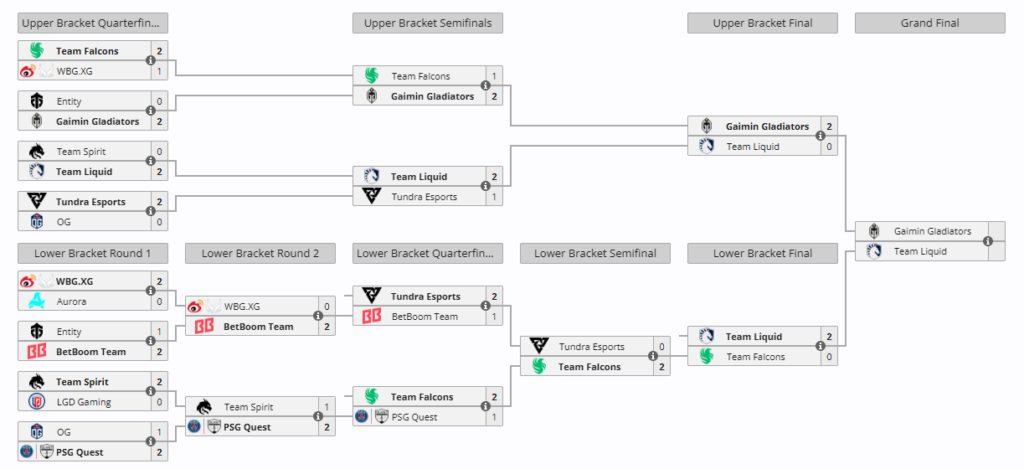 | Team Falcons vs Gaimin Gladiators | 1-2 |