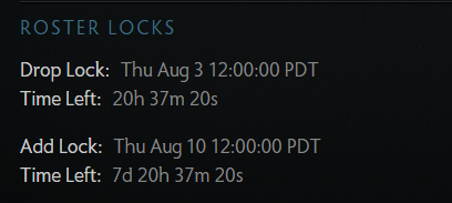 There are two roster lock dates. One for removing players and one more for adding players. Teams can only remove players before August 3rd. Afterward, teams still can add new players until the “add lock” deadline on August 10th.