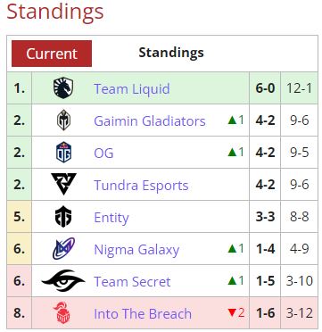 | Team Secret | Division I | Must win against Nigma and Entity beats Nigma for a tiebreaker |