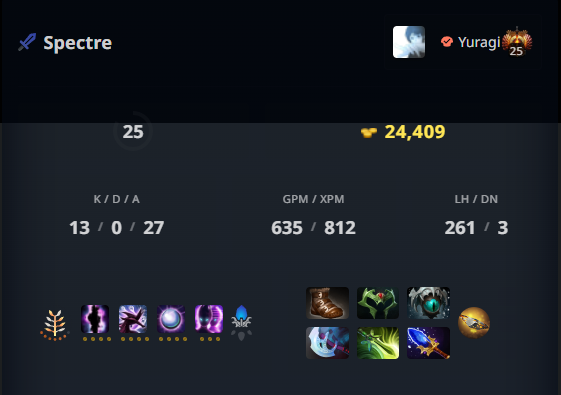 OG as a whole was having a good time throughout the game, but Yuragi’s Spectre was amassing a ton of Kills and Assists. With 0 deaths on Spectre, Yuragi holds the record for the highest KDA with a total score of 40.