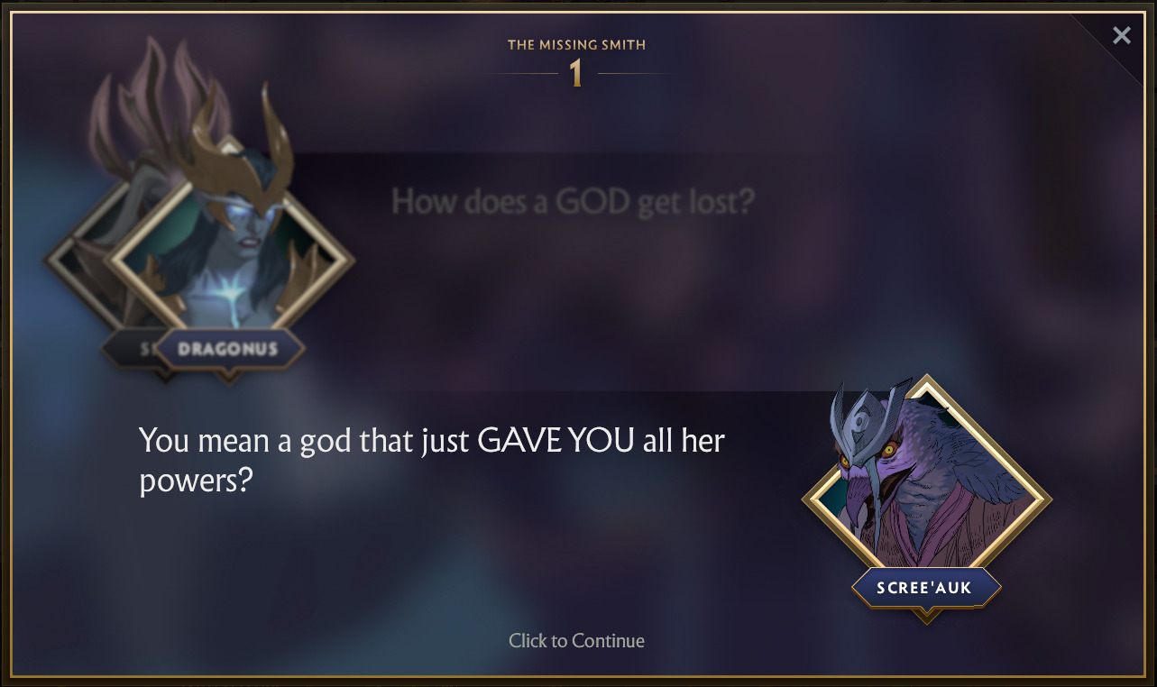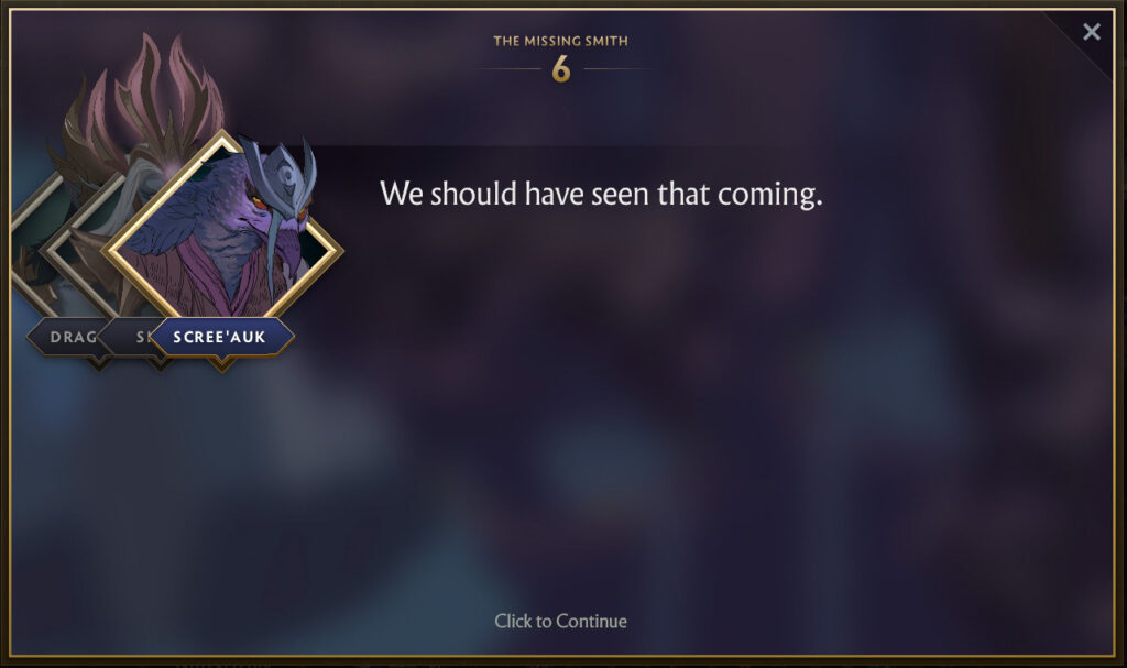 Although the story of The Missing Smith ends on a cliffhanger whether Riki will help or not, it’s still worth completing. As the reward for the completion of Riki’s Crownfall quest is an immortal for the trickster himself. But, knowing Riki, this isn’t the last we’ll see of him.