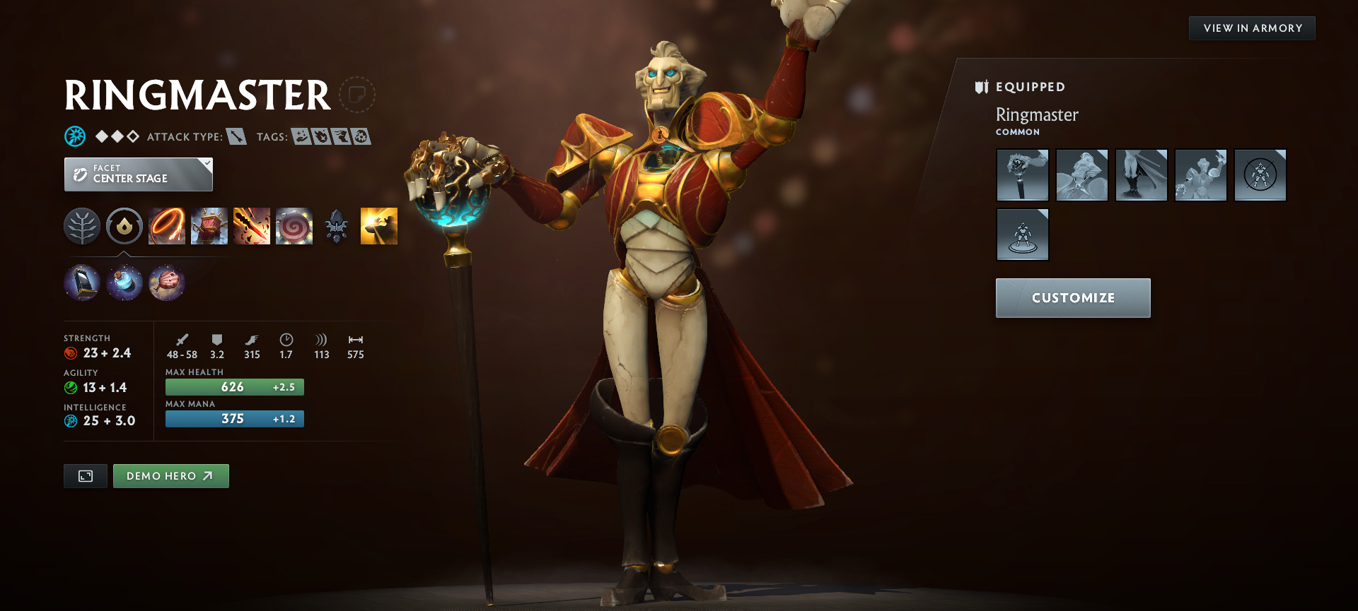 Dota 2’s newest hero is here! Ringmaster is an Intelligence hero and a designated Support with the ability to nuke, escape, and disable the opponents. Here is a summary of his abilities: