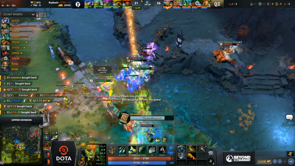 Both teams played the game incredibly well, with the teams going even in the laning phase. During the midgame, an Rosh play by Quincy followed by a counter stampede by EG leading to a retreat from the pit by Quincy was one of the game highlights showcasing just how good these two teams are at reading each other.