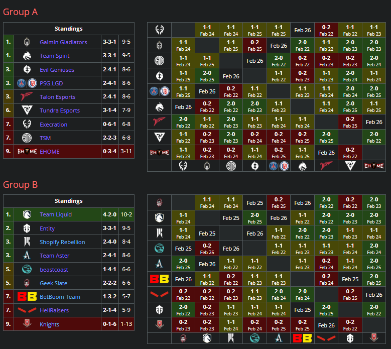 In Group B, Eastern European (EEU) teams, BetBoom Team and HellRaisers, found themselves at the bottom with a 5-7 and 5-9 score respectively. BetBoom is not performing well despite fielding an all-star roster that bagged a convincing first-place finish in EEU DPC. HellRaisers, on the other hand, are playing at a disadvantage as Artem “Yuragi” Golubiev stands in for the team last minute.