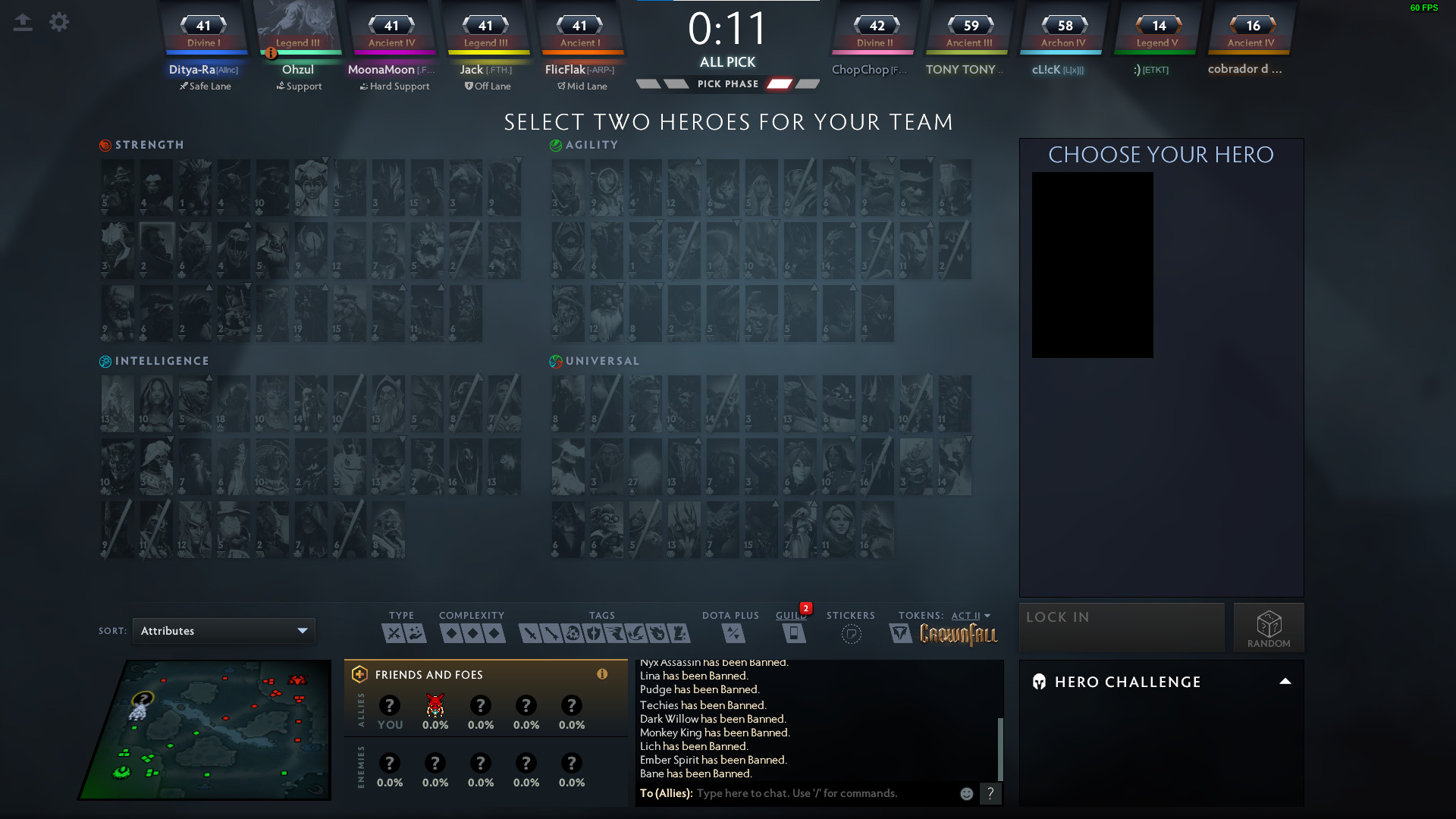 Dota 2 Ranked Game mode draft screen
