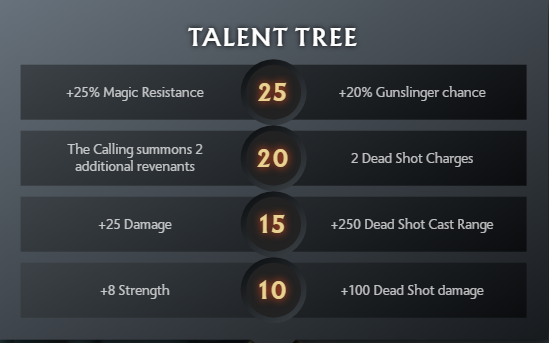 - Level 15: +25 damage vs +250 Dead Shot cast range
