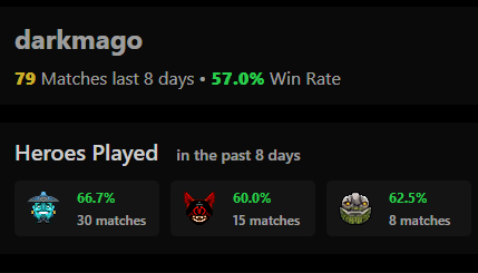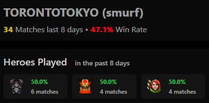 Tundra’s top 3 most-played heroes in the last 8 days (smurf accounts included):