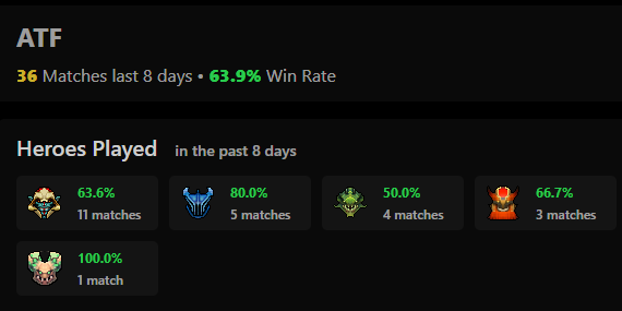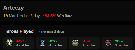 TA’s top 3 most-played heroes in the last 8 days (smurf accounts included):