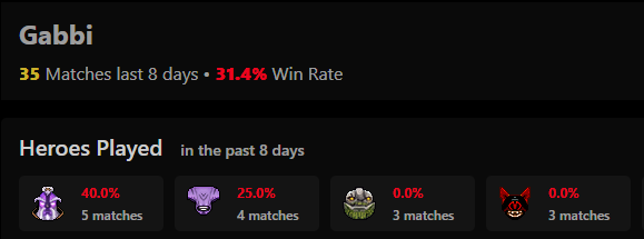 - Gabbi: Void Spirit (5), Faceless Void (4), Tiny (3)