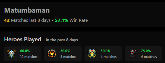 Daxak and Larl weren’t very active with only 1 match the last week. Offlaner Noticed was spamming a lot of Doom and Underlord, a seemingly popular pick now. The last few days, SoNNeikO spammed Winter Wyvern, and it’s quite the go-to tournament support pick.
