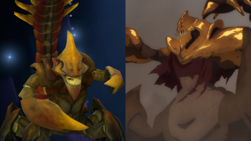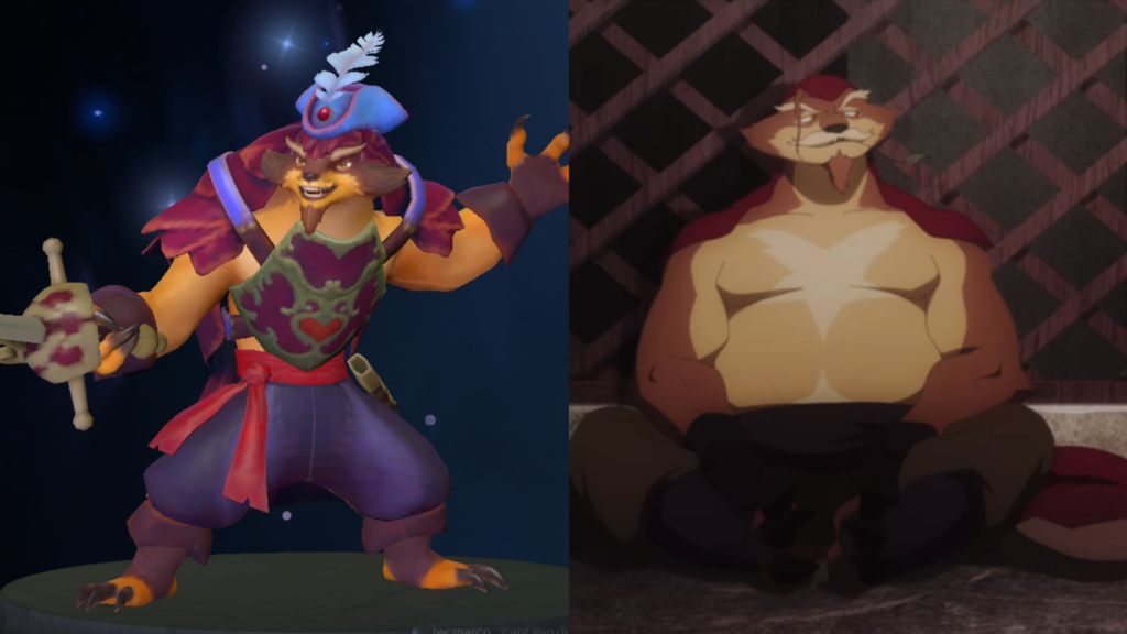 Not to be confused with a turtle, the show introduced a creature of Pangolier’s species, easily recognized from his looks and his distinct accent. Called Nico Hieronimo, he appeared as Luna’s cellmate in a prison, showing intense admiration to Luna’s ferocity. Although he isn’t exactly the Pangolier from Dota, he comes from the same clan, Nivan Gallants. According to the lore, Nivan Gallants is an organization of pangolin-like race, who live for swordplay, romance, and adventure.