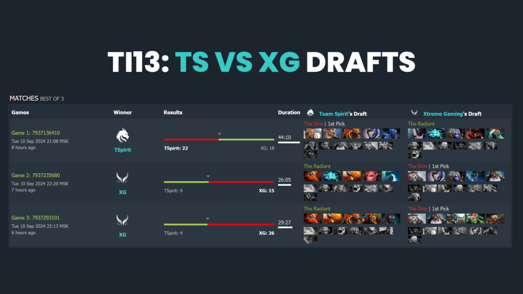 Spirit allowed the Sniper one more time and picked their signature Terrorblade. However, the pick didn’t work at all. It was another game with not many kills, but every teamfight XG forced, Illya “Yatoro” Mulyarchuk was severely punished.