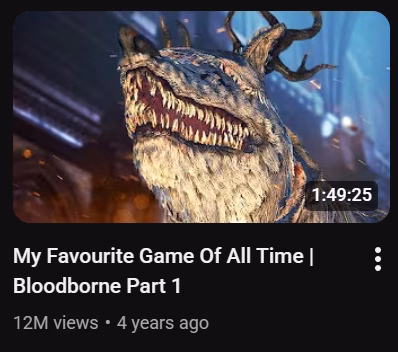 He’s not all talk, either. The first video on his Bloodborne playthrough is titled “My Favourite Game of All Time.” Collectively, his Let’s Play series on this game has amassed over 24 million views.