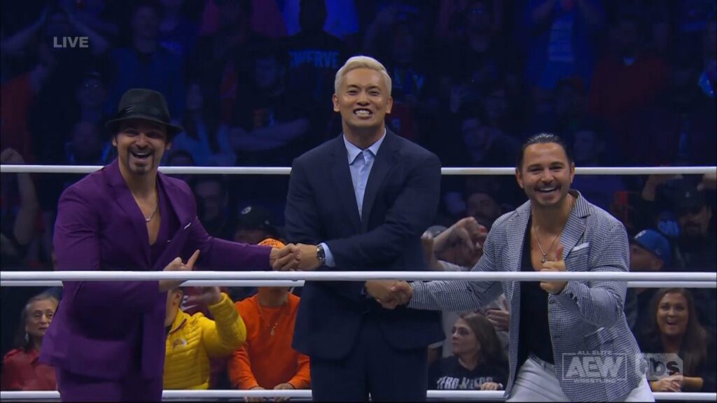 As for Okada, his appearance on Dynamite tonight involved Okada coming out to make the save for Eddie Kingston against our very own EVPs… Or, so we thought. Instead, we now have a new member of The Elite in a heel Kazuchika Okada. What? Wow. Huh?