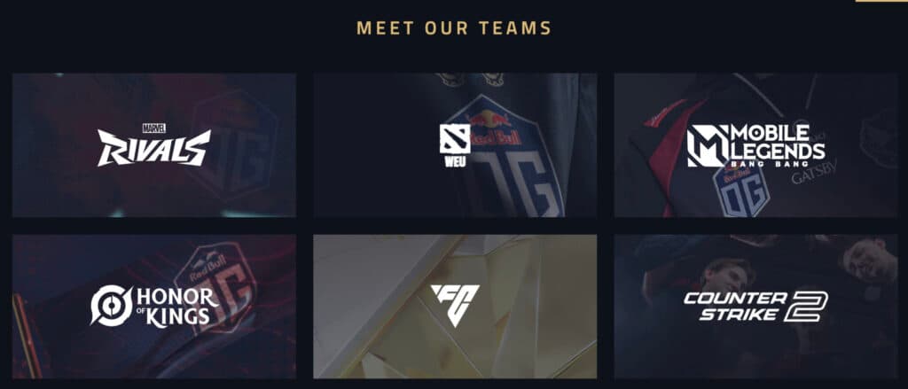 OG Esports currently competes in six esports titles; Dota 2, Counter-Strike, EA FC, Marvel Rivals, Honor of Kings and MLBB.