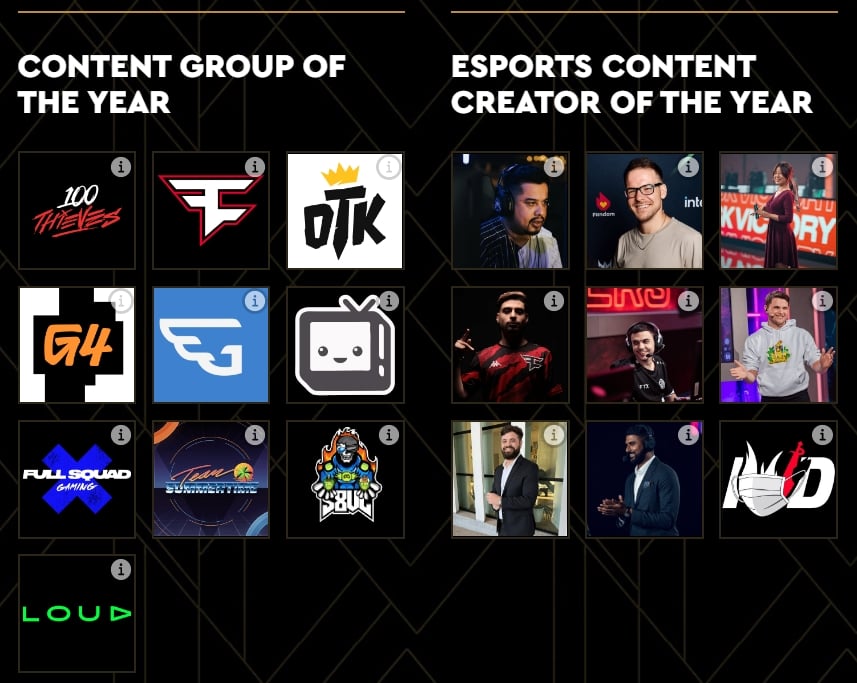 Content Group of the Year Finalists for Esports Awards 2022