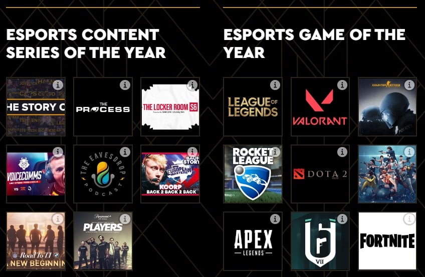 Esports Content Series of the Year Finalists for Esports Awards 2022