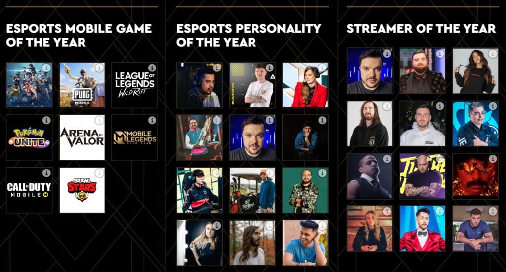 The Esports Awards 2022 Entertainment Finalists have been unveiled. Esports Personality of the Year, Streamer of the Year and more!