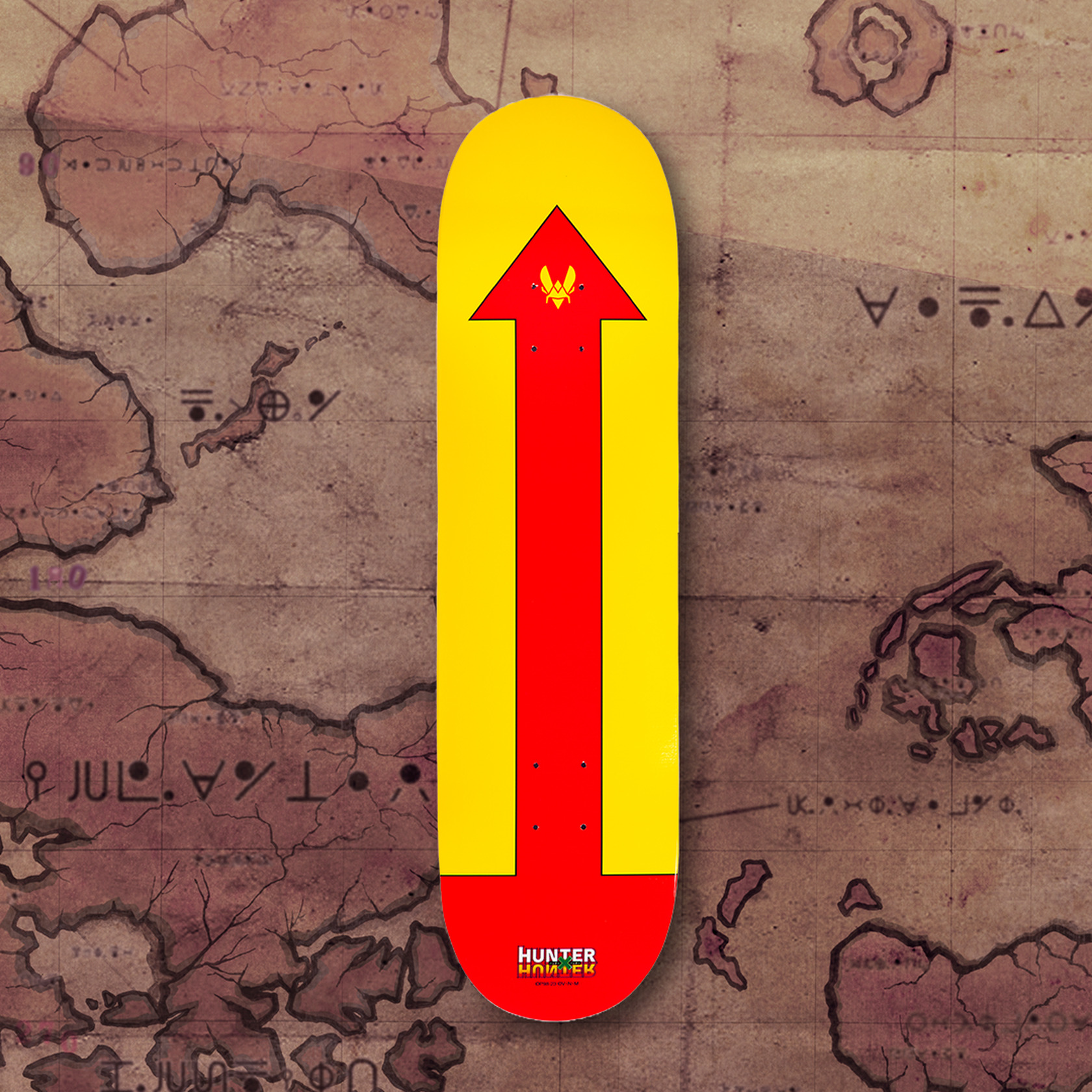 The range includes two shirts, a limited edition skateboard, a hoodie, and a logo cap. These mix both the Vitality logo and colors with images of the iconic anime title. Several pieces of the collection take inspiration in part from characters from the show, with the white tee taking inspiration from Killua and the black tee from Gon Freecss.