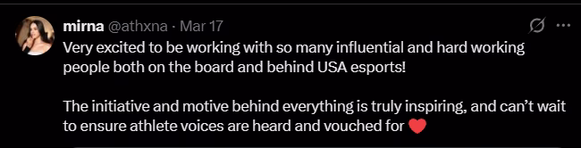 USA Esports, a non-profit organization promising to build a pipeline for the youth and their future in professional esports leagues, launched on March 17, 2026. Their board of directors includes familiar names, like Søren “Bjergsen” Bjerg, Jordan “n0thing” Gilbert, and Mirna “athxna” Noureldin.