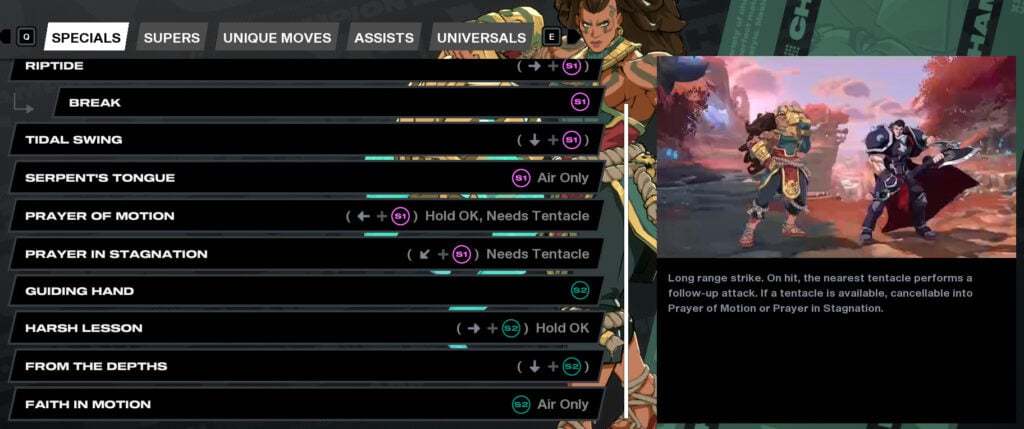 - Prayer of Motion: ← + S1 (Needs Tentacle, Hold OK)