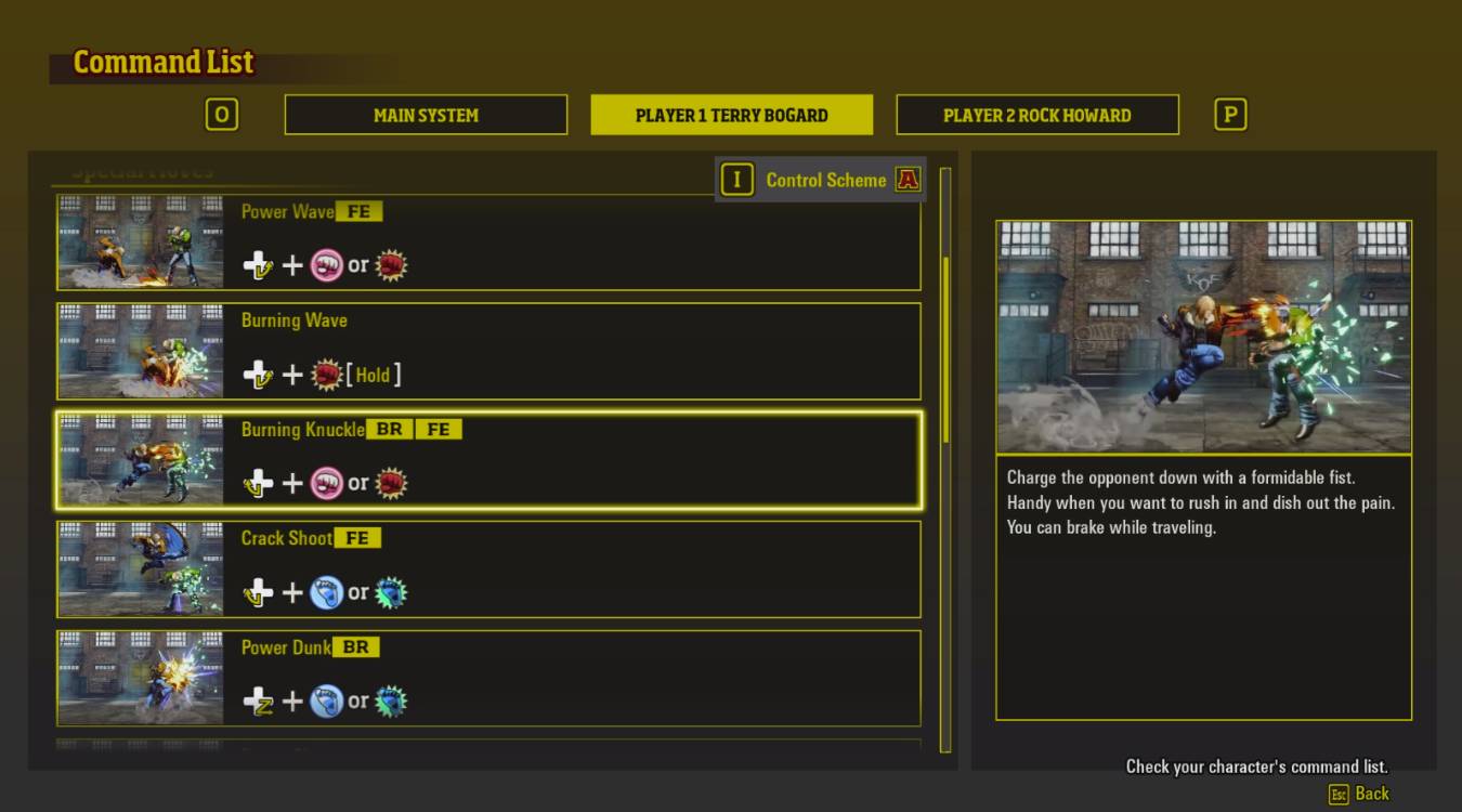 The classic control scheme in Fatal Fury: City of the Wolves uses traditional inputs of such games as Street Fighter, The King of Fighters, and earlier Fatal Fury.