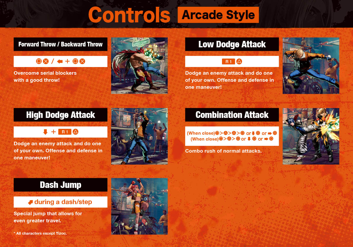 - Throw is Light Punch + Light Kick — Square + Cross on PlayStation; X + A on Xbox.